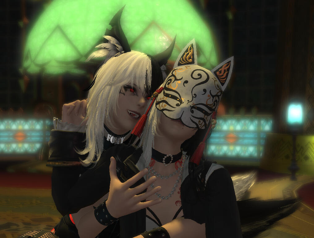 Dislikes: Rude people, smelly trolls, pineapples, grape flavoringLoki Ryujing, a dragon fox spirit of mysterious origins, has wandered the world for centuries, though she has long since lost track of her exact age. Her agelessness is both a blessing and a curse, as she cannot die of old age but remains vulnerable to other dangers. Her journey began in the enchanted forests outside of Gridania, where she was discovered as a young and solitary creature. She grew up not ever knowing who she really was or where she came from. She became quite the adventurer to find out. After centuries she settled down in the Mist where she is content to life out the rest of her life collecting shinies, and playing black jack.
